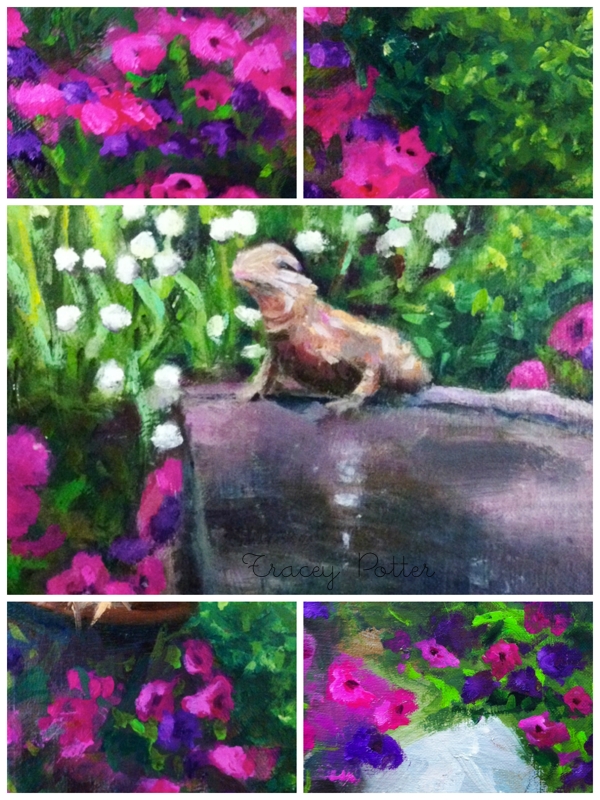 Just a quick one this week to share detail pics of 'The Garden King' painting.